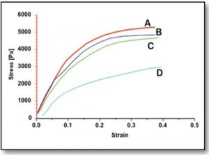 Hình dạng Spindle kiểu Vane dễ dàng điều tiết chất kết dính có tính nhất quán khác nhau và tạo ra một đường cong lặp lại cho phép kiểm tra đạt / thất bại nhanh chóng. Trong Hình 1, Mẫu D có mô đun thấp nhất và do đó dễ dàng trét hoặc dán khi sử dụng thực tế. Các mẫu A và B có mô đun cao nhất và tương đối cứng hơn khi trét hoặc dán.