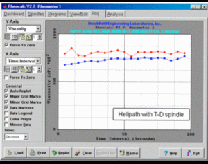 THIẾT BỊ KIỂM TRA• Kiểu máy đo độ nhớt: RV-• Kiểu spindle: T-D• Phụ kiện kết hợp: bộ Helipath Stand• Tốc độ kiểm tra: 10 rpmCách tiến hành:Các thử nghiệm được chạy ở nhiệt độ phòng.Thử nghiệm ban đầu được thành lập vào năm 1960 bởi Viện Mayonnaise và Salad Dressing ở Hoa Kỳ và chỉ định Máy đo độ nhớt dạng cơ của Brookfield RVT. Tuy nhiên, việc thu thập dữ liệu tự động có thể được thực hiện trên máy đo độ nhớt DV2TRV Viscometer và phần mềm Rheocalc. Dữ liệu kiểm tra tự động điển hình, so sánh hai sản phẩm khác nhau, Mayonnaise chuẩn “A” và Mayonnaise có hàm lượng béo thấp “L”, được hiển thị dưới đây: