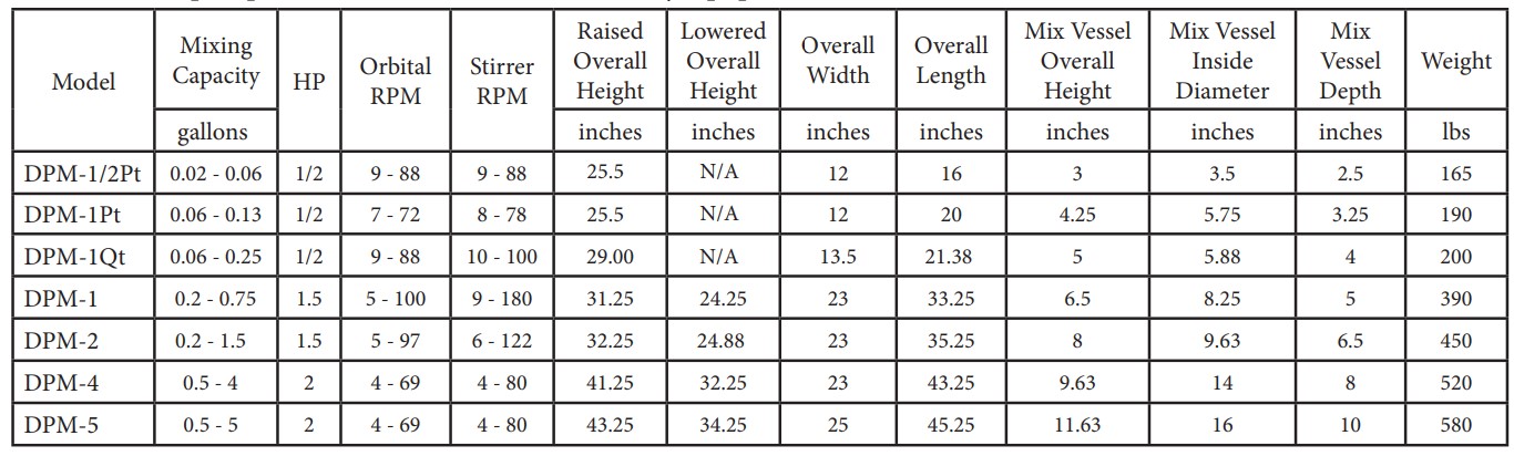 THÔNG SỐ KỸ THUẬT CỦA MÁY TRỘN HÀNH TINH KÉP DPM 1/2Pt-5