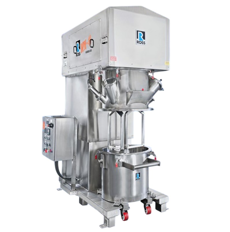 Máy trộn hành tinh kép DPM 1/2Pt-5 ROSS đảo trộn các vật liệu đặc, dính hoặc dạng bột nhão với hiệu suất cao thông qua tác động nhào trộn, làm mịn hỗn hợp và phá vỡ các khối kết tụ. Cơ chế khuấy trộn hành tinh tương tự rất hữu ích cho các hoạt động tạo hạt và sấy chân không có độ chính xác cao.
