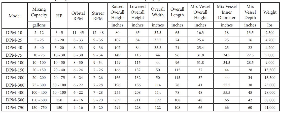 THÔNG SỐ KỸ THUẬT CỦA MÁY TRỘN HÀNH TINH KÉP DPM 10-750