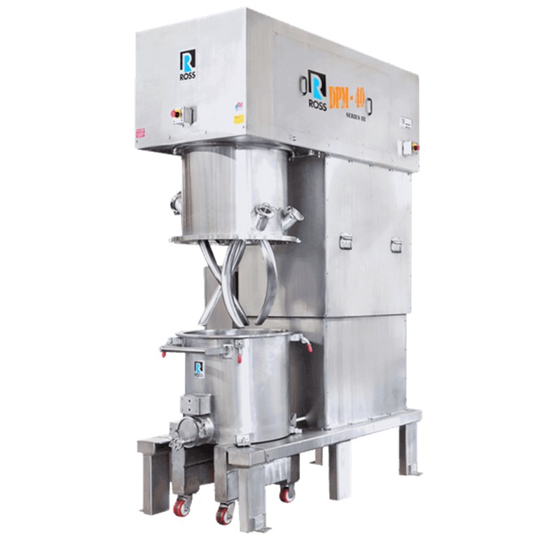 Máy trộn hành tinh kép DPM 10-750 ROSS đảo trộn các vật liệu đặc, dính hoặc dạng bột nhão với hiệu suất cao thông qua tác động nhào trộn, làm mịn hỗn hợp và phá vỡ các khối kết tụ. Cơ chế khuấy trộn hành tinh tương tự rất hữu ích cho các hoạt động tạo hạt và sấy chân không có độ chính xác cao.