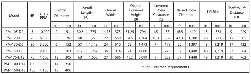 Máy trộn siêu cắt mẻ PreMax PM-105-D2 của ROSS là máy trộn công suất lớn với rotor/stator Delta được cấp bằng sáng chế cho các ứng dụng cắt cao, có tốc độ đầu trộn có thể điều chỉnh lên đến 5.000 ft/phút và tương thích với Công nghệ ống phun rắn/lỏng (SLIM) để tạo bột dưới bề mặt. Các tính năng chính bao gồm nâng đầu trộn thủy lực, động cơ chống cháy nổ từ 5 đến 150 mã lực, các bộ phận tiếp xúc bằng thép không gỉ và công tắc giới hạn an toàn. Thiết kế của máy tạo ra dòng xoáy kép, cho phép trộn và trộn bột hiệu quả, và có thể mở rộng từ mô hình phòng thí nghiệm đến mô hình sản xuất quy mô lớn.