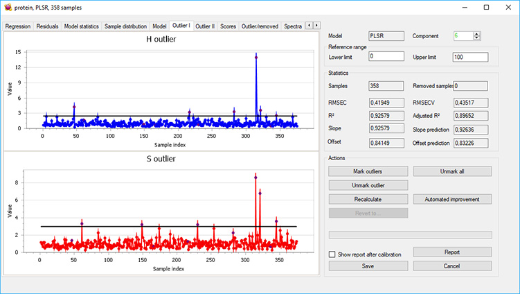 - Thống kê hỗ trợ người dùng chọn mô hình tối ưu(ví dụ: RMSEC, RMSECV, giá trị của Fisher)